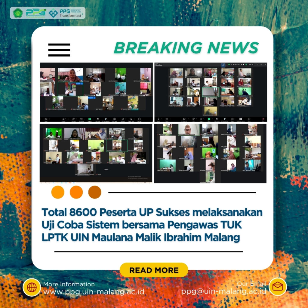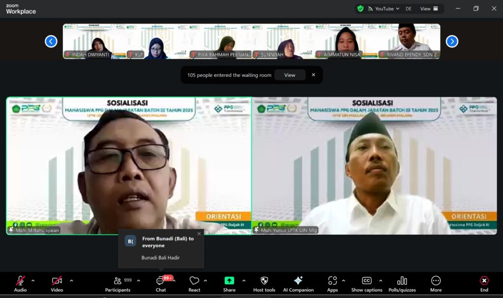 PPG NEWS – UIN Maulana Malik Ibrahim Malang menggelar kegiatan sosialisasi pelaksanaan Uji Pengetahuan Uji Kompetensi Mahasiswa PPG (UP-UKMPPG) bagi para peserta Program Pendidikan Profesi Guru (PPG) pada Selasa, 14 Oktober 2025. Kegiatan yang berlangsung secara daring melalui Zoom Meeting ini bertujuan memberikan pemahaman komprehensif terkait mekanisme, jadwal, serta prosedur
